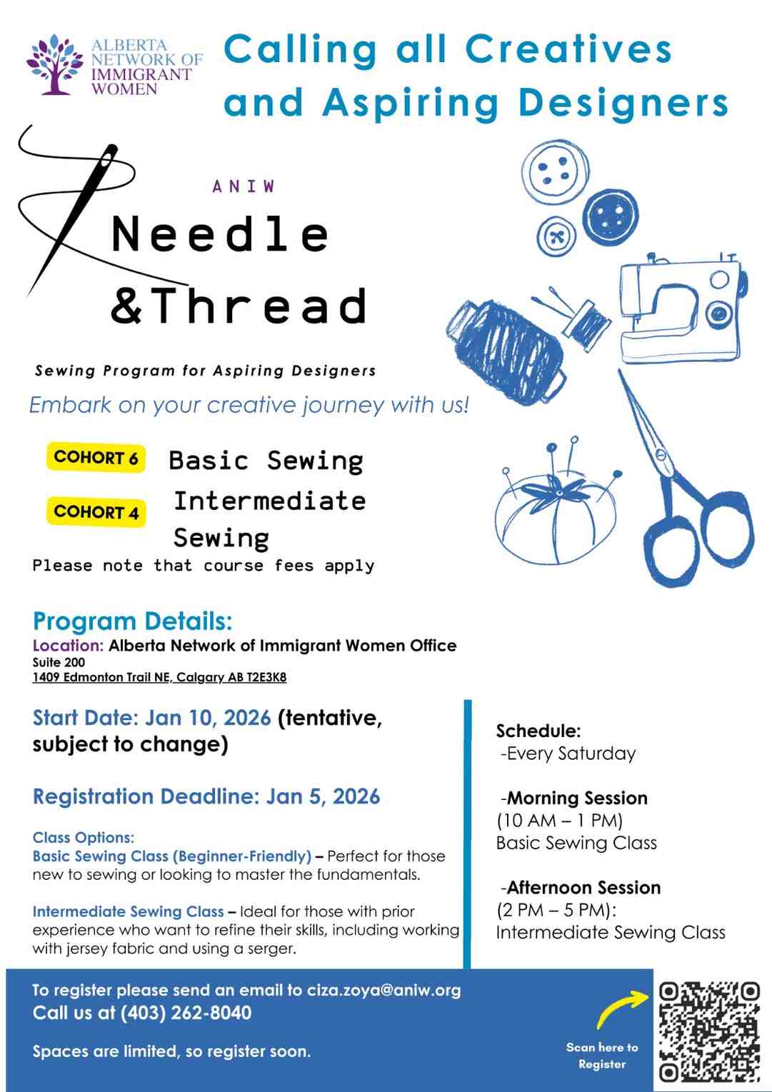 Our sewing program, Needle and Thread, is now open for registration. Please refer to the poster for full details .
